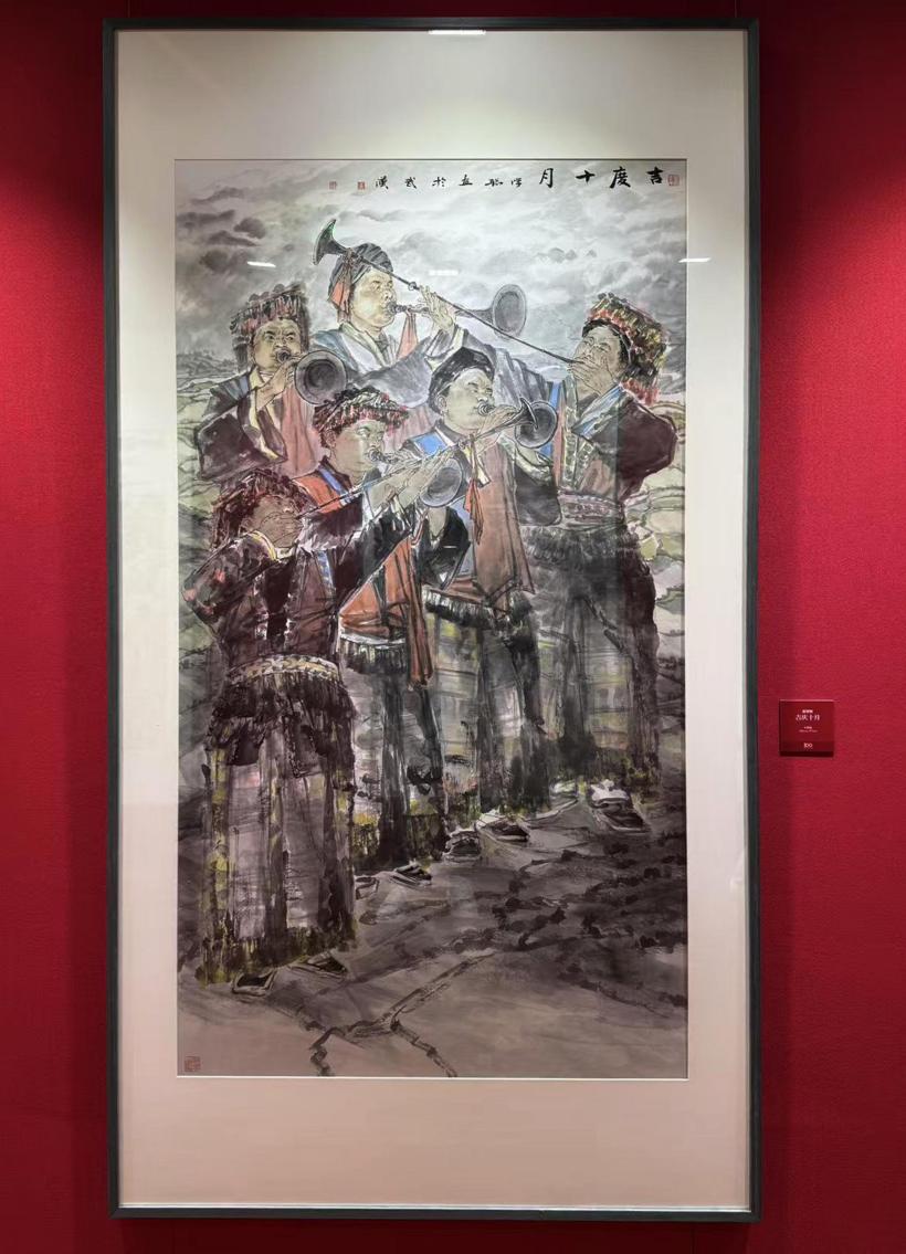918日,由中国致公党中央委员会主办的“百年风华翰墨香——庆祝中国致公党成立100周年美术书法作品展”在北京首都博物馆隆重开幕。本次展览荟萃了来自全国各地的150余件美术书法精品,充分展现了致公党党员及侨界、美术界艺术家对祖国的无限热爱以及对致公党百年华诞的深情祝福。致公党江汉大学支部主委吴学聪的国画作品《吉庆十月》受邀参展。该作品以描绘致公中央对口扶贫的贵州少数民族欢庆场景为主题,并以传统国画笔墨为基,融时代气象于丹青之中,通过富于民族特色的意象和热烈饱满的色彩,表现欢庆祥和的节日氛围,反映出新时代中国的繁荣面貌和人民的美好生活,以艺术语言传递出喜悦与祝福,致敬致公党百年来的奋斗历程与中国多党合作事业的辉煌成就。