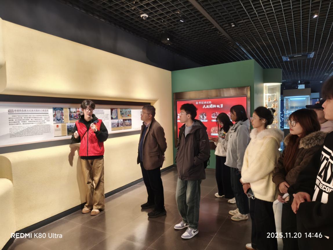 此次实践教学取得了丰硕成果。同学们纷纷表示,走出课堂、走进现场的学习方式,让原本抽象的理论变得鲜活而深刻。一位同学在分享感悟时动情地说:“最触动我的是《美美与共》展区,苗绣里的土家纹样,土银器上的汉族工艺,都在无声诉说着我们从来都是血脉相连。这让我真切体会到,我们就像石榴籽一样,紧紧拥抱在一起,共同构成了伟大的中华民族。”另一位同学谈到:“从辛亥革命‘五族共和’的初识,到民族学博物馆‘美美与共’的深化,我更加明确了作为新时代青年,要自觉成为民族文化的传播者和民族团结的践行者。”