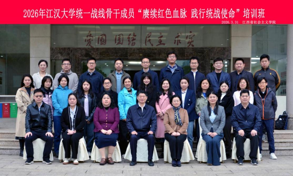 为深入学习贯彻党的二十届四中全会精神,切实提升统一战线成员政治素养与履职能力,江汉大学党委统战部联合江西省社会主义学院于3月29日至4月2日,组织开展“赓续红色血脉 践行统战使命--江汉大学2026年统一战线骨干成员素质能力提升培训班”。此次培训班由江汉大学党委副书记张红星和党委统战部常务副部长杨光敏带队,学校统一战线骨干成员、协同创新中心骨干成员及党委统战部工作人员共29人参加。学员们赴江西省南昌、瑞金、于都,通过“现场教学、专题授课、实践体验”等多种形式,完成系列学习任务并顺利结业。